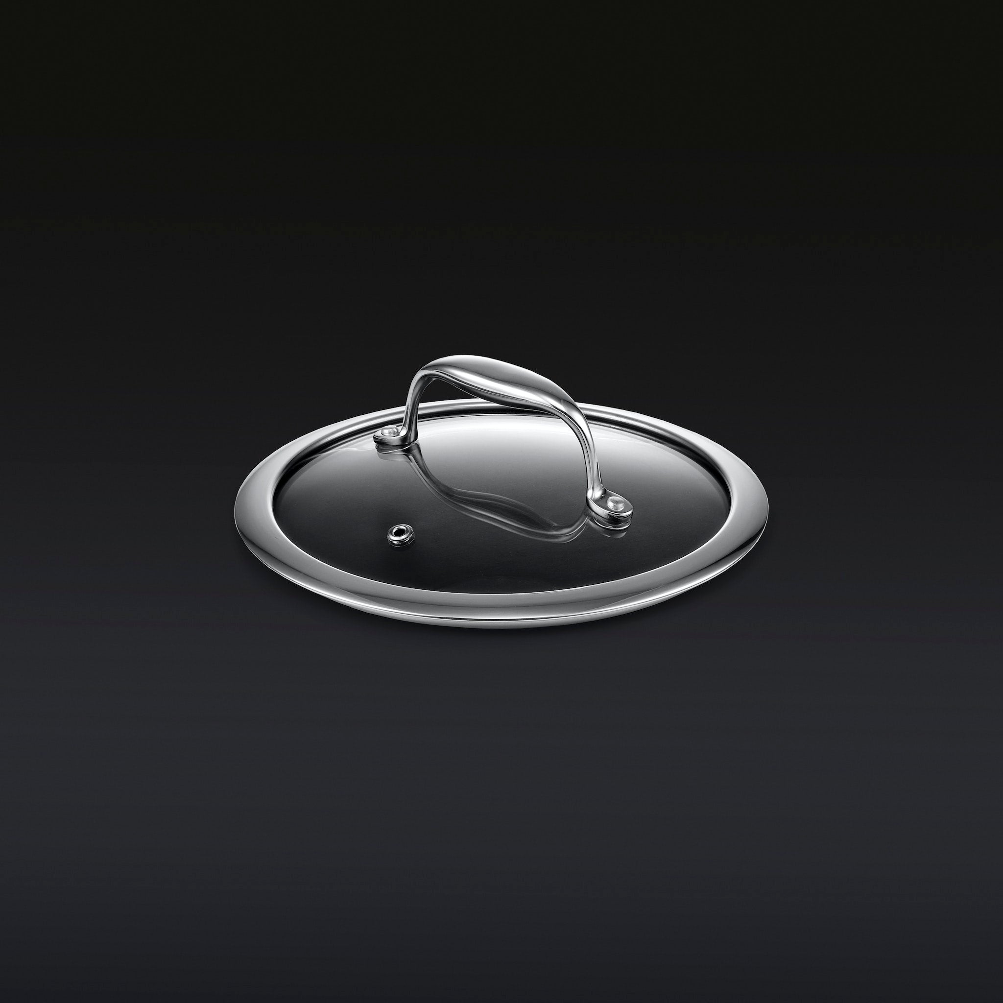 Our transparent tempered-glass lid. thanks to its small steam vent and stay-cool handle. allows you to keep an eye on your food without losing precious cooking heat in order to check on it. (The vent is also a nice touch when cooking rice or pasta.) Bonus: It's also crack- and break-resistant.